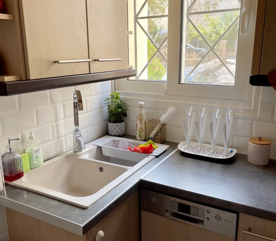 Α΄επίπεδο: 50 μ² (ημιυπόγειο) = μεγάλη κουζίνα, playroom & wc.