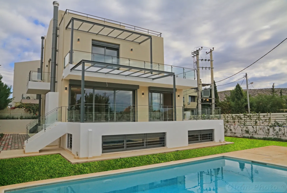 Βίλα 432m² Βάρη, 4 επίπεδα, κατασκευής 2020. Αποτελείται από 5 υ/δ, 4 μπάνια, 2 σαλόνια, 2 κουζίνες, WC. Διαθέτει αυτόνομη θέρμανση, τζάκι, κλιματισμό, ηλιακό θερμοσίφωνα, πόρτα ασφαλείας, συναγερμό, αποθήκη, βεράντα, κήπος, πισίνα, parking.