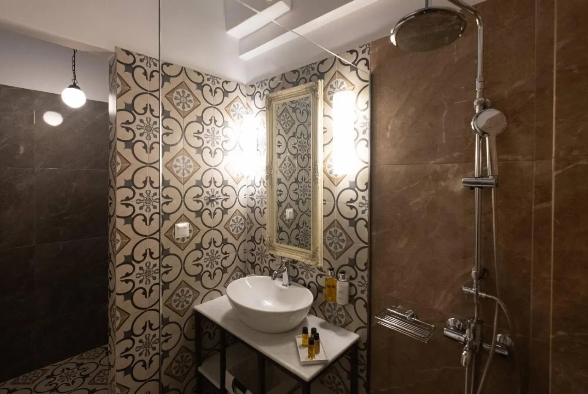 ΘΗΣΕΙΟ ανακαινισμένο κτίριο 265 τ.μ., 3 επίπεδα, ημιυπογείου – 1ου – 2ου, 5 υ/δ, κατασκευή ’08, 6 μπάνια, σε οικόπεδο 145 τ.μ., μισθωμένο, ενεργ. κλ. Δ, ζώνη οικιστική, ανακαίνιση ’19, Σύνορα με Ανω Πετράλωνα (Ξενοδοχείο – Boutique Hotel) προσόψεως, επιπλωμένο, με 2 μικρές εσωτερικές αυλές – αίθρια. Πρόκειται για διατηρητέο οικόπεδο στο οποίο κατασκευάστηκε νέο κτίσμα – εκ θεμελίων – με οπλισμένο σκυρόδεμα, σύμφωνα με ΦΕΚ Υπ. Περ/ντος. Βάσει Αδείας αποτελείται από: Ημιυπόγειο 108 τμ το οποίο σήμερα είναι διαρρυθμισμένο σε 2 αυτόνομα διαμερίσματα (24 τμ και 36 τμ). Επίσης, υπάρχει χώρος 40 τμ για κοινόχρηστο σερβίρισμα πρωινού και Office για τον Host. Α’ όροφος 108 τμ το οποίο σήμερα είναι διαρρυθμισμένο σε 2 αυτόνομα διαμερίσματα (46 τμ με μικρό μπαλκονάκι και 48 τμ αντίστοιχα). Β’ όροφος 50 τμ, με εσωτερική βεράντα. Πολυτελείας, νεοκλασικό στιλ, αυτόνομη θέρμανση (φυσικό αέριο), κλιματισμός, πόρτες ασφαλείας, δρύινο πάτωμα, γρανιτοπλακάκι στα δάπεδα και λουτρά, τριφασικό ρεύμα, κεραμοσκεπή, αλουμίνια με διπλούς υαλοπίνακες και ηλεκτρικά ρολά, γύψινα οροφής κλπ. Όλο το κτίριο παρέχει νέες ηλεκτρολογικές και υδραυλικές εγκαταστάσεις. Δεν διαθέτει ανελκυστήρα και δεν υποχρεούται σε δέσμευση θέσης στάθμευσης (Ν1221 ). Απέχει 800 μ. από μετρό Κεραμικού (Γκάζι) και 1 χλμ. από ηλεκτρικό (Πετράλωνα). Μισθωμένο μέχρι 01 /2031.